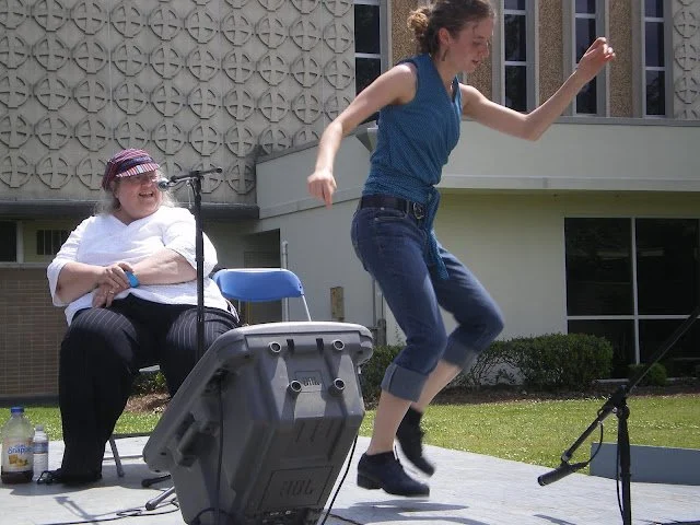 Workshop material can include: Sean-nós dance, old-style Irish step dancing, Tap dancing, set dancing, and her favorite: improvisation!